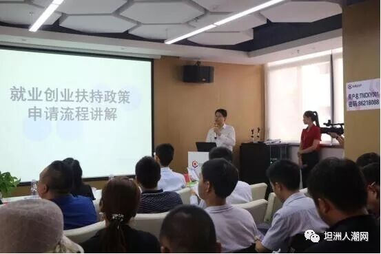 本次活动邀请了坦洲镇人社局创业就业股冯腾飞老师讲解了中央、省、市、镇四级创业扶持政策,指导和鼓励创业者积极创造条件申报,享受政策红利,助力创业成功。
